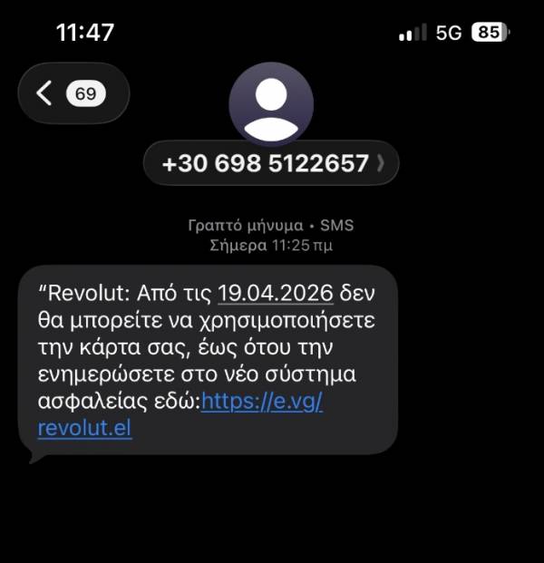 Το τελευταίο διάστημα έχουν αναφερθεί έντονες προσπάθειες εξαπάτησης που στοχεύουν χρήστες της Revolut μέσω γραπτών μηνυμάτων.
