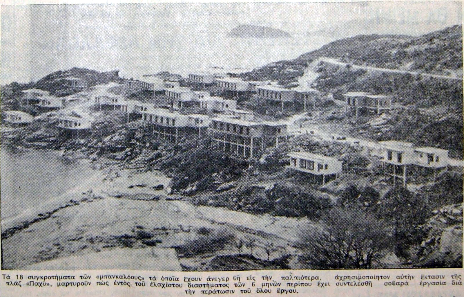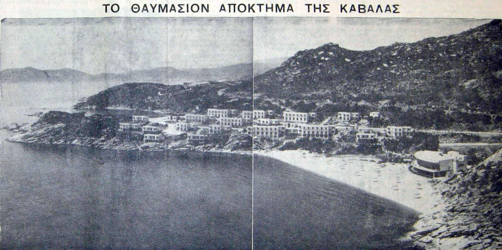 «Στις δυτικές ακτές της Καβάλας, σ'ένα ειδυλλιακό τοπίο, στο γνωστό μας ''Παχύ'' λίγο πιο πέρα απο την ακτή Μπάτη, δημιουργούνται τώρα οι πιο τέλειες και άνετες εγκαταστάσεις για να φιλοξενούν στο μέλλον ξένους τουρίστες. Δεκαοκτώ μπάνγκαλόους κι ένα τεράστιο διώροφο κτίριο που θα χρησιμεύει ως bar-εστιατόριο, ξεκινούν να αναγείρονται εκεί που κάποτε υπήρχαν θάμνοι, πάνω σε μια χέρσα έκταση 15 στρεμμάτων και η οποία για πολλούς εθεωρείτο άχρηστη».