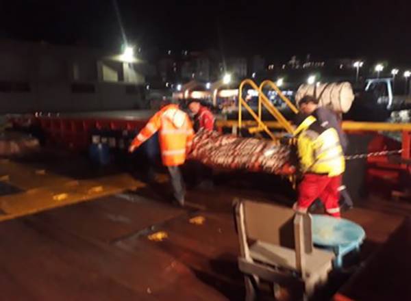 Το Κεντρικό Λιμεναρχείο Καβάλας απευθύνθηκε στην Energean για το κατά πόσο ήταν δυνατό να αποπλεύσει κάποιο σκάφος της άμεσα για το λιμάνι του Πρίνου. Με το συντονισμό του Νίκου Βογιατζή, Marine Coordinator της εταιρείας στην Καβάλα, λίγο μετά τις 8 το βράδυ ο καπετάνιος Μωυσής Καλαφάτης βάζει μπροστά τις μηχανές του Energean Wave για τον Πρίνο. Το σκάφος φτάνει εκεί γύρω στις 9 και ο συμπολίτης μας επιβιβάζεται, συνοδεία του γιατρού Νίκου Βουλτσίδη, για μεταφορά στην Καβάλα.