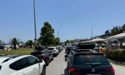 Από το λιμάνι της Κεραμωτής μέχρι το Χαϊδευτό έφτανε η ουρά των αυτοκινήτων το πρωί του Σαββάτου 19 Ιουνίου οι οδηγοί των οποίων περίμεναν τη σειρά τους για να ταξιδέψουν για το νησί της Θάσου.