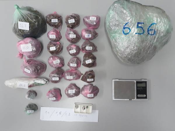 Κατασχέθηκαν οι παραπάνω ποσότητες ναρκωτικών και η ηλεκτρονική ζυγαριά.
