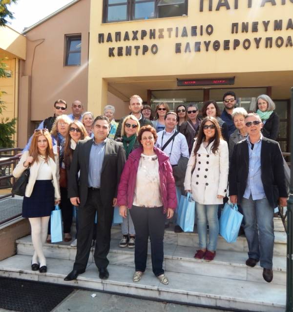 Στο πλαίσιο της φιλοξενίας από μέρους του 2ου Δημοτικού Σχολείου Ελευθερούπολης, εκπαιδευτικών από τα Σχολεία - εταίρους του προγράμματος ‘’COMENIUS: “WATERSONG”, από τις 27 Μαρτίου μέχρι τις 2 Απριλίου 2015, οι συμμετέχοντες επισκέφθηκαν, σήμερα το πρωί, το δημαρχείο Παγγαίου, συνοδευόμενοι από τις υπεύθυνες του προγράμματος, για την ελληνική συμμετοχή, Παγώνα Θεοδωρούδη και Αλεξάνδρα Αποστολίδου.