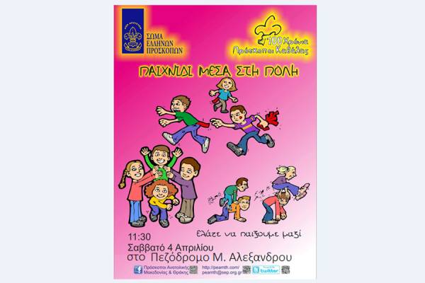 Οι Πρόσκοποι της Καβάλας σε συνεργασία με το κατάστημα παιχνιδιών «Μεταξάς» διοργανώνουν εκδήλωση με τίτλο «Παιχνίδι Μέσα στην Πόλη» και προσκαλούν όλους τους φίλους, μικρούς και μεγάλους το Σάββατο 4 Απριλίου 2015 στον πεζόδρομο της Μ. Αλεξάνδρου από τις 11:30 έως τις 13:00.