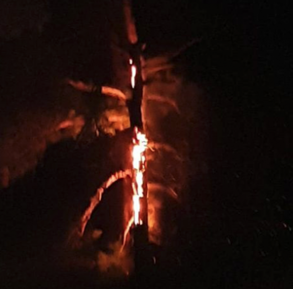 Στη φωτογραφία και στο βίντεο φαίνεται το δέντρο την ώρα που καίγεται