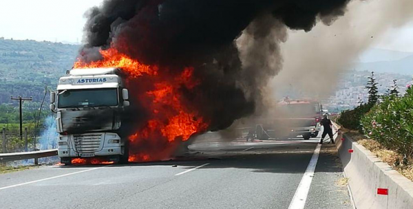 Ολοσχερώς κάηκε μια νταλίκα από τη Ρουμανία που κινούντο στην Εγνατία Οδό πολύ κοντά στη Βέροια, στο ρεύμα προς Θεσσαλονίκη. Ο οδηγός πρόλαβε και βγήκε από το όχημα.