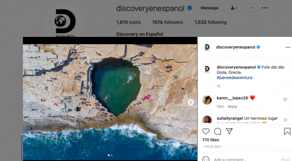 Πιο συγκεκριμένα το γνωστό σε όλους μας Discovery αλλά στην Ισπανική του έκδοση, δημοσίευσε φωτογραφία της Γκιόλας στα Μέσα Κοινωνικής Δικτύωσης, διαφημίζοντας με αυτόν τον τρόπο το νησί.
