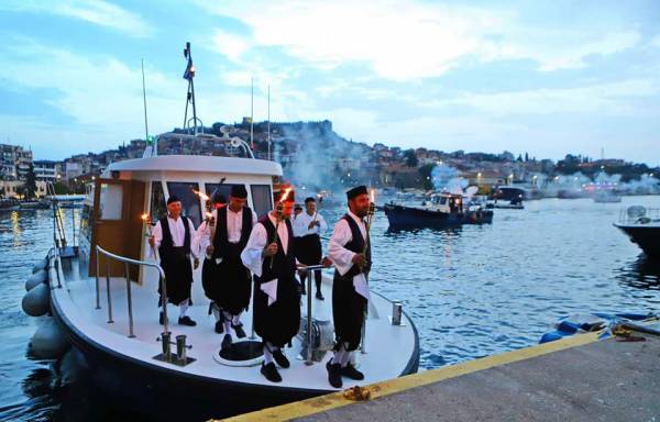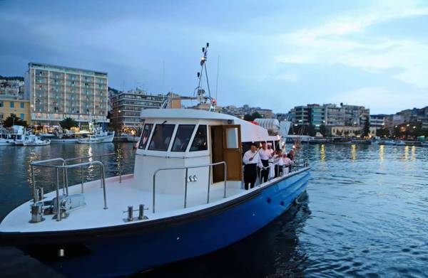 Σαν για να παρατείνουν την αδημονία του πλήθους οι καπετανέοι με τα σκάφη τους έκαναν πρώτα μία γύρα στο λιμάνι, ενώ οι σειρήνες των πλοίων αντηχούσαν.