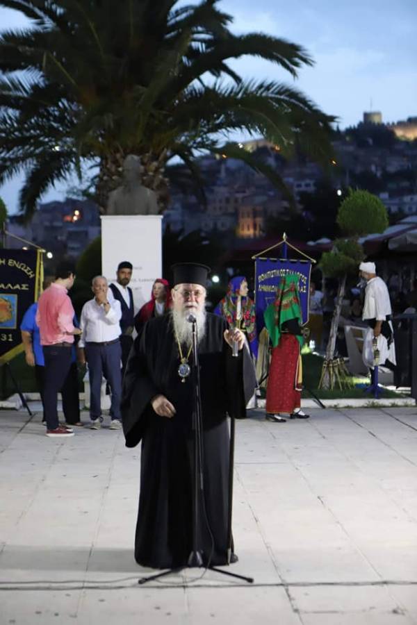 Χαιρετισμό απηύθυναν ο Μητροπολίτης Φιλίππων Νεαπόλεως και Θάσου κ. Στέφανος, ο Υπουργός Εθνικής Άμυνας, Νίκος Παναγιωτόπουλος και ο Αντιπεριφερειάρχης Καβάλας, Κώστας Αντωνιάδης, ενώ στο χρονικό άφιξης του λόχου των Θασίων στο λιμάνι της Καβάλας, αναφέρθηκαν ο Πρόεδρος της Θασιακής Ένωσης Καβάλας, Νίκος Τσιλογιώργης και η Πρόεδρος του Πολιτιστικού Συλλόγου Λημνιών Καβάλας, Εύη Παπουτσίδου.