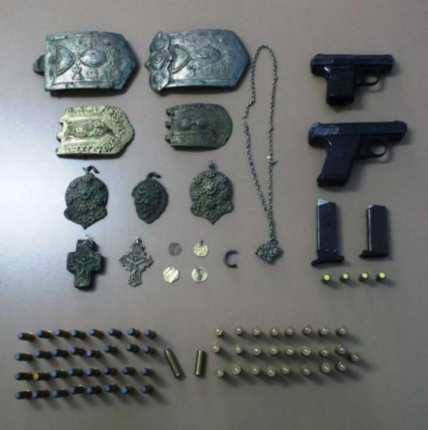 Συνελήφθη το πρωί της Δευτέρας 2-6-2015 στην Πετρούσσα Δράμας, από αστυνομικούς της Ομάδας Δημόσιας Ασφάλειας του Τμήματος Ασφάλειας Δράμας, 55χρονος ημεδαπός, κατηγορούμενος για παράβαση των νόμων περί όπλων και περί προστασίας των αρχαιοτήτων και εν γένει της πολιτιστικής κληρονομιάς.