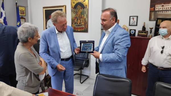 Ο Δήμαρχος της Θάσου κ. Ελευθέριος Κυριακίδης υποδέχθηκε τον Υφυπουργό κ. Norbert Barthle στο γραφείο του στο Δημαρχείο.