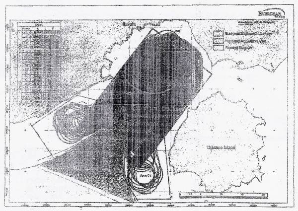 Προκειμένου να είναι εφικτοί οι ελιγμοί του πλοίου εντός των ελληνικών υδάτων, προστέθηκε η επιπλέον θαλάσσια περιοχή, όπως φαίνεται στην φωτογραφία.