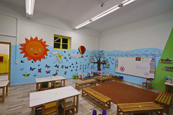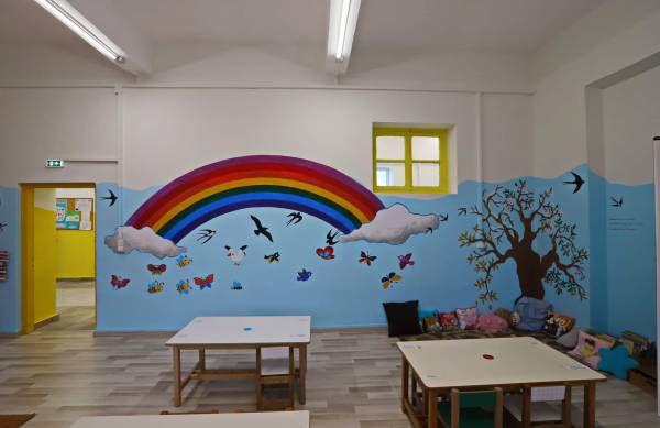 Με υπέροχες παραστάσεις και ζωντανά χρώματα γέμισαν οι αίθουσες διδασκαλίας του νηπιαγωγείου Κρυονερίου, από τη νέα εικαστική παρέμβαση του γνωστού Καβαλιώτη ζωγράφου, Γιάννη Κανίογλου.