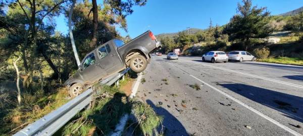 Αποτέλεσμα ήταν να περάσει πάνω από τα διαχωριστικά κιγκλιδώματα ευτυχώς χωρίς να τραυματιστεί.