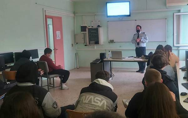 «Η εκπαιδευτική κοινότητα του σχολείου μας εκφράζει θερμές ευχαριστίες στον Διοικητή του Αστυνομικού Τμήματος Θάσου κ. Ψαρογιάννη για την αξιοσημείωτη συμβολή του στο παιδαγωγικό και εκπαιδευτικό μας έργο», αναφέρει σε ανάρτηση που έκανε μαζί με τις σχετικές φωτογραφίες, η διευθύντρια του σχολείου, Αρετή Κώτση.
