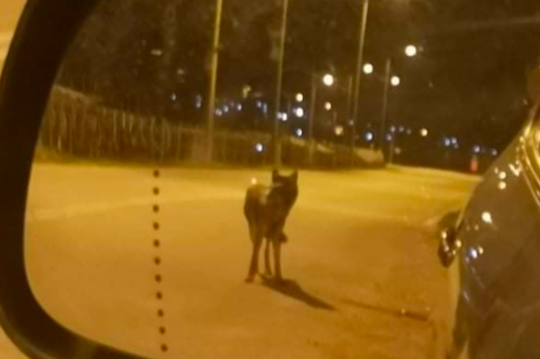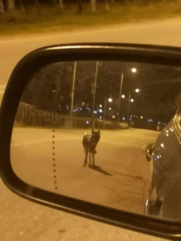 Την φωτογραφία έβγαλε ο πρόεδρος της κοινότητας Νέα Περάμου Μάκης Ζουμπλιός και φαίνεται ο λύκος να είναι κινείται σε κεντρικό δρόμο κοντά στο Ελαιοχώρι