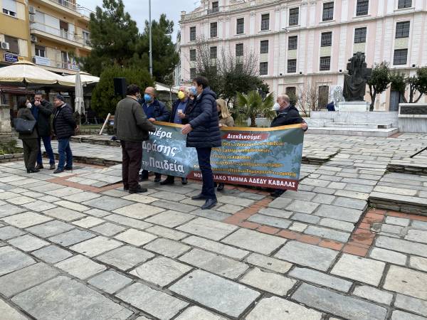Συγκέντρωση διαμαρτυρίας, στο πλαίσιο της «Μέρας Δράσης για την Παιδεία» πραγματοποίησαν εκπαιδευτικοί της Καβάλας την Τετάρτη (23/2) στην πλατεία Καπνεργάτη.