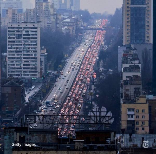 Σειρήνες πολέμου ήχησαν από νωρίς το πρωί στην Ουκρανία, λίγη ώρα μετά την εντολή του Βλαντιμίρ Πούτιν να ξεκινήσουν οι στρατιωτικές επιχειρήσεις. Όλοι οι δρόμοι που οδηγούν στην έξοδο της Ουκρανικής πρωτεύουσας είναι γεμάτοι από αυτοκίνητα με οικογένειες που θέλουν να φύγουν εκτός της περιοχής για να προφυλαχθούν. Το μποτιλιάρισμα στους δρόμους είναι απίστευτο. Δείτε τις εικόνες