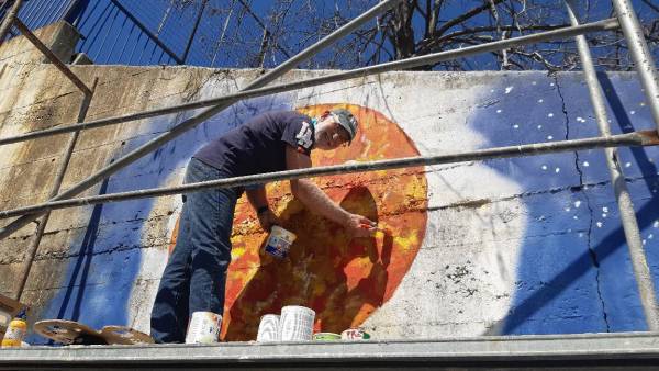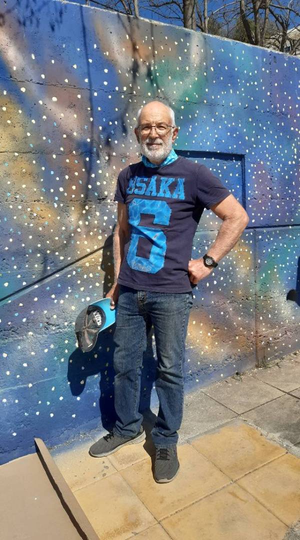 Το πρωί του Σαββάτου 9 Απριλίου 2022, μετά την προεργασία που έκαναν τα μέλη του Συλλόγου Γονέων και Κηδεμόνων και του Συλλόγου των Κατοίκων της Νεάπολης, δημιούργησε εικόνες και έδωσε περισσότερο χρώμα στο τοίχο που περιβάλλει τον προαύλιο χώρο του εν λόγω σχολείου, εμπιστεύομενος τη όρεξη και την φαντασία των μαθητών.