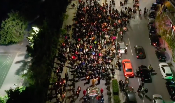 Εντυπωσιακές είναι οι εικόνες που καταγράφηκαν από ψηλά το βράδυ της Μεγάλης Παρασκευής στην περιφορά του επιταφίου στην Καβάλα.