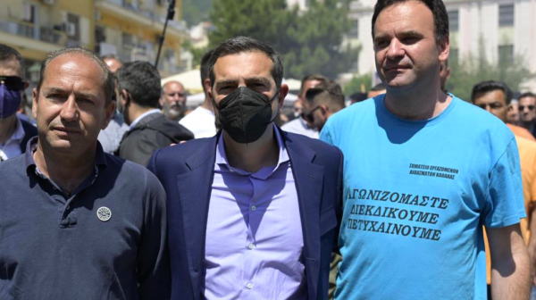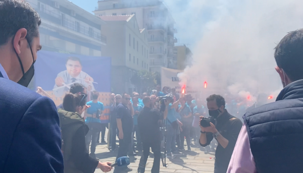 Ο πρόεδρος του ΣΥΡΙΖΑ έγινε δεκτός με συνθήματα από τους απολυμένους στα Πετρέλαια και τα Λιπάσματα.