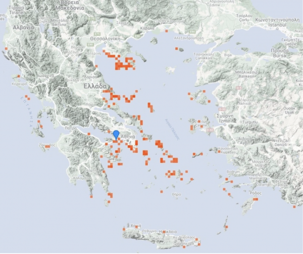 Ο χάρτης του iNaturalist καταγράφει τις παραλίες στις οποίες έχουν εντοπιστεί φέτος το καλοκαίρι.