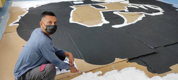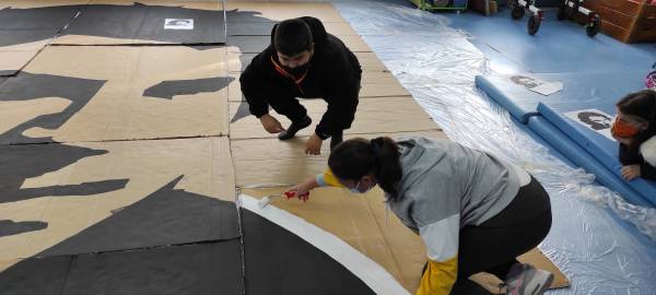 Ταυτόχρονα, κάτι εντυπωσιακό συνοδεύει το τραγούδι τους! Κάτι που να αρμόζει στη μεγαλειώδη προσωπικότητα και τον επιβλητικό χαρακτήρα του συνθέτη. Οι μαθήτριες και οι μαθητές του Ε.Ε.Ε.ΕΚ Ξάνθης με υπομονή και μεράκι ζωγράφισαν ένα - ένα τα κομμάτια ενός πάζλ 35 τετραγωνικών μέτρων με τη μορφή του Μίκη Θεοδωράκη.