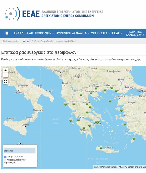 Η Ελληνική Επιτροπή Ατομικής Ενέργειας (ΕΕΑΕ) έχει στην ιστοσελίδα της και συγκεκριμένα στην υποσελίδα με τίτλο «Επίπεδα ραδιενέργειας στο περιβάλλον» έναν χάρτη με τους σταθμούς μέτρησης που λειτουργεί ανά την επικράτεια, οι οποίοι μετρούν μικροσωματίδια και ολική-γ στον αέρα.