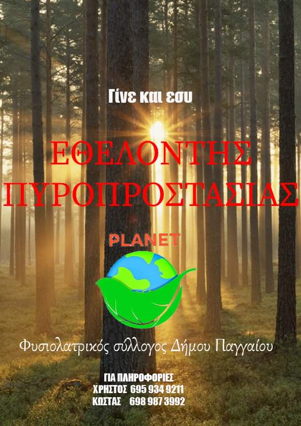 Τα μέλη του Φυσιολατρικού Συλλόγου «Planet» του Δήμου Παγγαίου δηλώνουν έτοιμα να προσφέρουν τις υπηρεσίες τους για την πυροπροστασία της περιοχής.