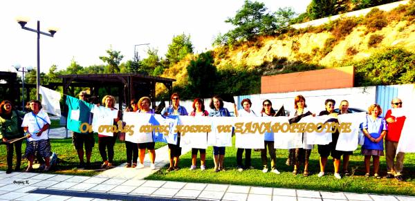 Δέθηκαν με σχοινιά θέλοντας να δείξουν την απελπιστική κατάσταση στην οποία βρίσκονται παραμένοντας απλήρωτοι για έναν ολόκληρο χρόνο. Κόλλησαν και χαρτιά τέλεσης μνημόσυνου της χαμένης εργασίας τους.