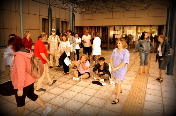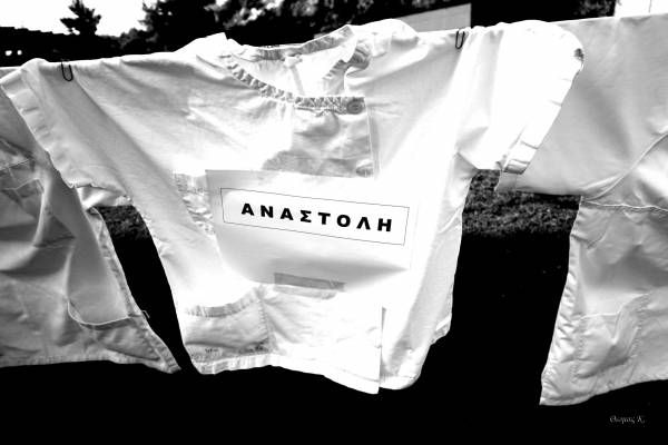 Το πρωί προχώρησαν σε μία διαφορετική διαμαρτυρία στον περιβάλλοντα χώρου του Νοσοκομείου. Άπλωσαν τις στολές τους σε σκοινιά, με το σύνθημα αυτές οι στολές πρέπει να ξαναφορεθούν.