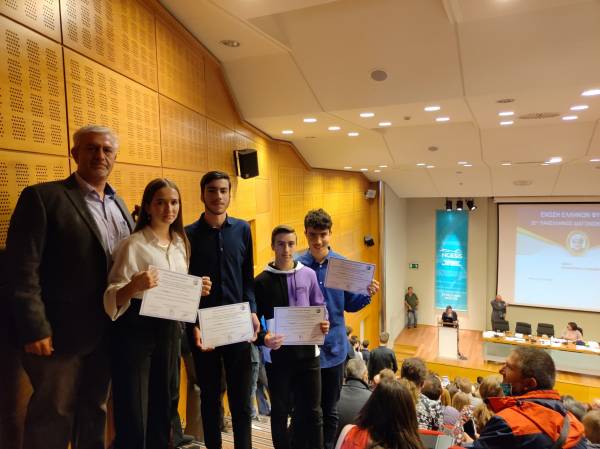 Οι μαθητές μας (Μουρατίδης Άγγελος, Μπιλικαΐδης Γιώργος, Μπιλικαΐδης Πέτρος, Μπλούχος Αριστοφάνης, Πούλος Αθανάσιος, Σκαμνιώτη Γεωργία, Χακμπάλλα Ύλλκα) με τη συνοδεία του υπεύθυνου καθηγητή τους Χρηστίδη Χρήστου, παρουσία των γονέων τους, παρέλαβαν τα βραβεία.