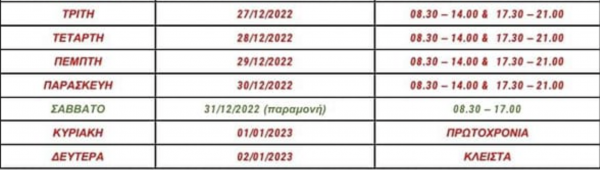 Από την Τρίτη 3 Ιανουαρίου του 2023 τα καταστήματα θα επανέλθουν στο σύνηθες ωράριό τους.