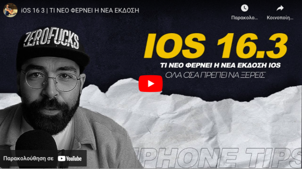 Τι φέρνει η καινούρια έκδοση iOS 16.3 στα iPhone (βίντεο) Κυρ, 29/01/2023 - 22:22 Τι καινούριο φέρνει η έκδοση 16.3 του λογισμικού iOS στα iPhone; Τι διαφορετικό μπορεί να κάνει κάποιος με τις καινούριες λειτουργίες; Τις απαντήσεις στις ερωτήσεις αυτές θα βρείτε στο παρακάτω βίντεο: