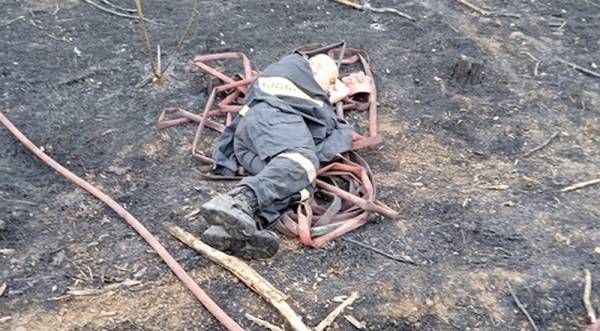 Στη συγκεκριμένη φωτογραφία ο πυροσβέστης Μίλτος Δεληγιώργης ένας από τους δεκάδες που βρέθηκαν στα πύρινα μέτωπα που ξέσπασαν στο Αρίστηνο και στην Ιτέα κοιμάται στο έδαφος έχοντας ως στρώμα την μάνικα πυρόσβεσης.