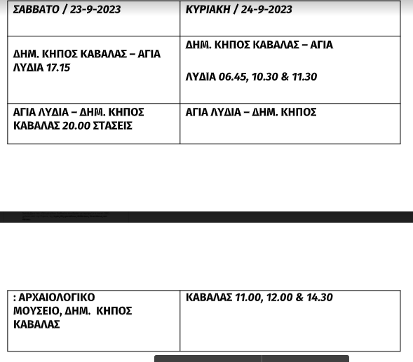 Για την εξυπηρέτηση του κοινού θα υπάρξουν τα ακόλουθα δρομολόγια λεωφορείων:”