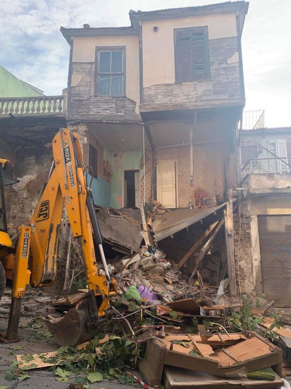 Κατέρρευσε το βράδυ της Πέμπτης 26 Οκτωβρίου 2023, τμήμα εγκαταλελειμμένης παλιάς κατοικίας στην οδό Ελληνικής Δημοκρατίας στην Καβάλα.