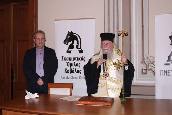 Καβάλας Χριστόφορος Αποστολακάκης έκοψε και μοίρασε τα κομμάτια στους επισήμους ενώ σε όλους τους σκακιστές και σκακίστριες μοιράσθηκαν ατομικά πιτάκια με δώρα 2 σκακιστικά χρονόμετρα και ένα σκακιστικό βιβλίο.