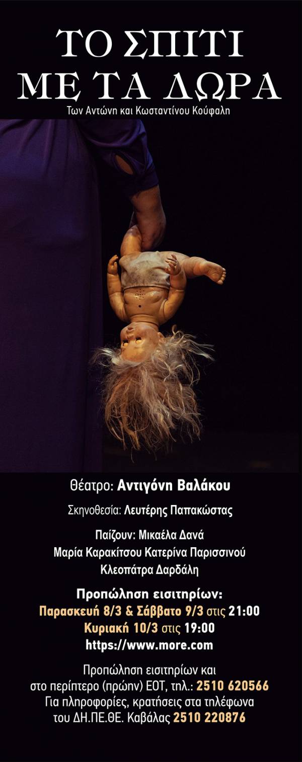 Ηλεκτρονική Προπώληση: https://www.more.com/theater/to-spiti-me-ta-dora-3/