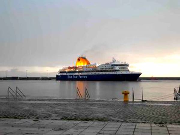 Είναι η πρώτη άφιξη του πλοίου, το οποίο θα έρχεται κάθε Τετάρτη τις επόμενες εβδομάδες και θα αντικαταστήσει το Blue Star Myconos για περίπου έναν μήνα. Ναυπηγήθηκε το 2011, έχει μήκος 145,90 μέτρα και πλάτος 23,2 μέτρα, ταξιδεύει με ταχύτητα 25,5 κόμβων και μπορεί να φιλοξενήσει μέχρι 2.400 επιβάτες και 430 οχήματα.