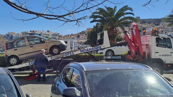 Αρκετά ήταν τα παρκαρισμένα οχήματα στην παραλιακή της Καβάλας, το πρωί της 25ης Μαρτίου 2024.