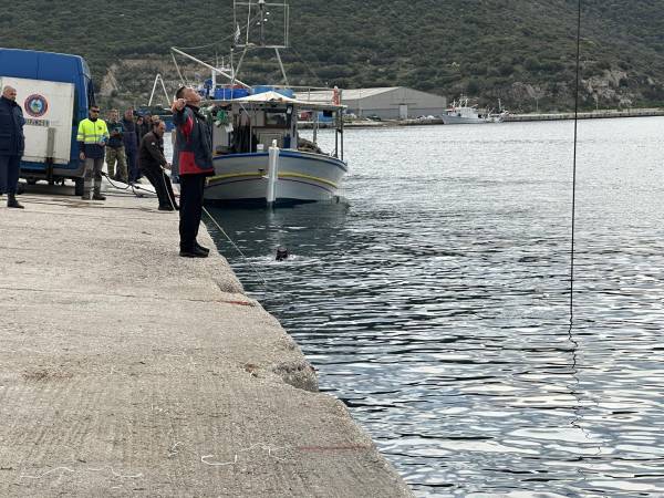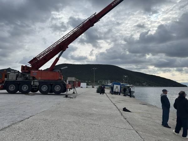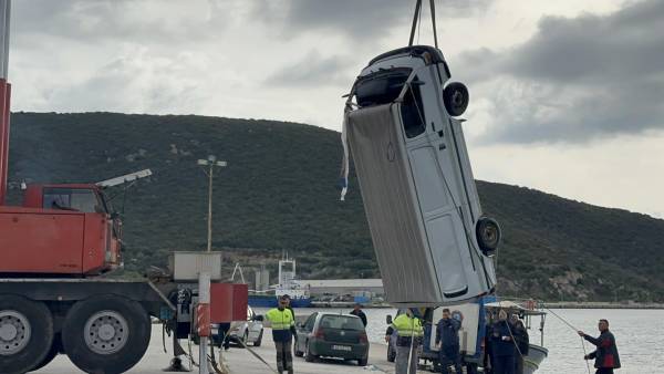 Σε εξέλιξη βρίσκεται στις 9 το πρωί της Τρίτης 26/3 η διαδικασία ανάσυρσης του αυτοκινήτου που έπεσε στο λιμάνι της Νέας Περάμου.