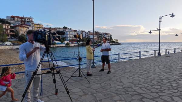 Οι δημοσιογράφοι πραγματοποιούν απευθείας μεταδόσεις από το νησί και κάνουν ρεπορτάζ σε διαφορά σημεία με θέμα το Πάσχα στη Θάσο.