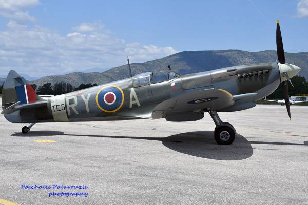 Κοιτάζω προσεκτικά. Το αεροσκάφος φέρει αγγλικά διακριτικά – ψάχνω την ιστορία του. Κατασκευάστηκε το 1945 από τη Vickers Armstrong στο Castle Bromwich, εκεί δηλαδή που κατασκευάστηκαν πολυάριθμα Spitfire όλων των εκδόσεων για τις ανάγκες του Β Παγκοσμίου Πολέμου.