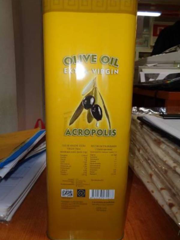 Πρόκειται για το προϊόν το οποίο πωλείται ως "Εξαιρετικό Παρθένο Ελαιόλαδο", με την εμπορική ονομασία «ΑΚΡΟΠΟΛΙΣ», «Ελληνικό Προϊόν», Lot No 1735, συσκευασίας των 5 λίτρων και αναγραφόμενη ημερομηνία στο λευκοσιδηρό δοχείο 30/12/2016, ενώ σε αυτοκόλλητη ετικέτα αναγράφονται οι ενδείξεις зехтин Акрополис 5л.., Произход: Гърция, L 1749, дистрибутор «Cуити конс Еоод», години до: 04.2017, email: sweety.cons @ mail. bg.