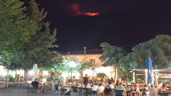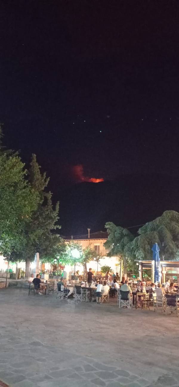 Η φωτιά που βρίσκεται σε εξέλιξη στο Παγγαίο στην περιοχή της Μεσορόπης είναι πλέον ορατή από την νότια μεριά του βουνού.