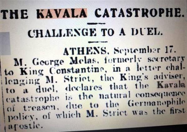 Οι εφημερίδες της Αυστραλίας επικαλούνται τηλεγραφήματα Αγγλικών πρακτορείων ειδήσεων και γράφουν και για τον βομβαρδισμό στρατιωτικών εγκαταστάσεων της Καβάλας από το Αγγλικό ναυτικό.