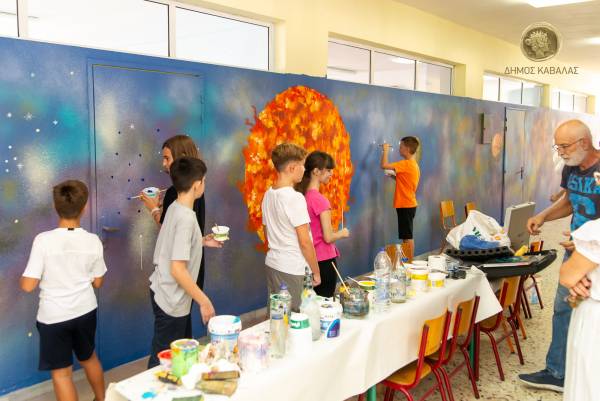Ο ζωγράφος γέμισε με χρώμα το σχολείο με τη βοήθεια των μαθητών.