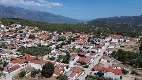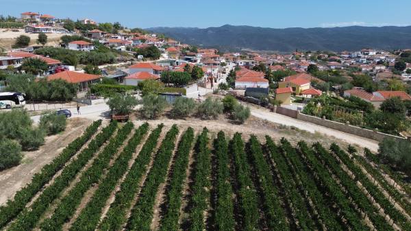 Στα γύρω χωριά υπάρχουν γραφικοί λόφοι, αμπέλια και τα βουνά Παγγαίο ορατά στον ορίζοντα.
