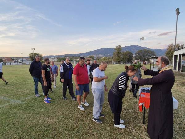 Ποδοσφαιριστές, Προπονητής, Διοίκηση, παλαίμαχοι ποδοσφαιριστές, συγχωριανοί και μέλη της ομάδας βρέθηκαν στο γήπεδο όπου ο Πάτερ Αντώνιος Ξηρός ευλόγησε τους πάντες, όπως και τις γηπεδικές εγκαταστάσεις!!!
