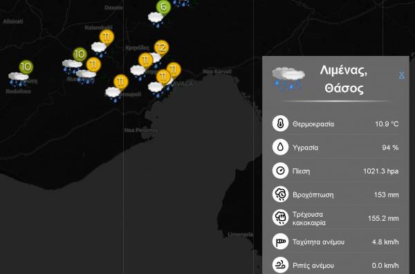 Tη μεγαλύτερη ημερήσια ποσότητα βροχής που έχει καταγραφεί ποτέ στον νομό Καβάλας κατέγραψε το Σάββατο 30 Νοεμβρίου ο μετεωρολογικός σταθμός του δικτύου του Meteokav στον Λιμένα Θάσου των Natura Bungalows.
